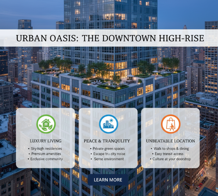 If you’re seeking the perfect blend of luxury and convenience, the Downtown High-Rise may be your ideal urban oasis.