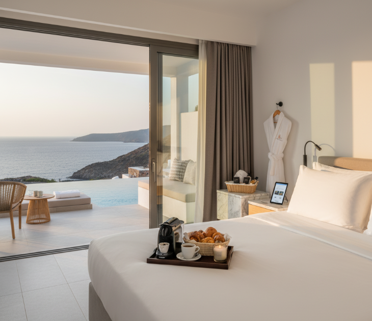 - Luxussuiten mit privaten Balkonen und Meerblick
