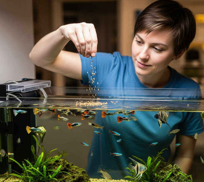 - Provide the right amount and type of food to promote fish health and monitor their behavior for signs of distress.