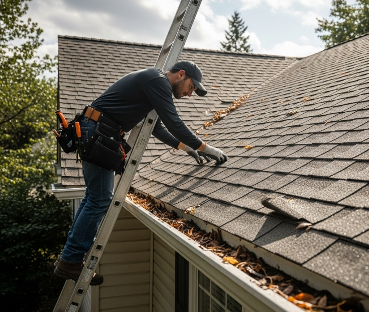 Start by evaluating the roof materials; whether it’s shingles, metal, or rubber, each requires different care. Look for signs of wear, like missing shingles or rust.
